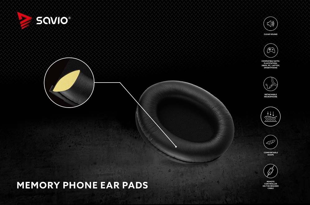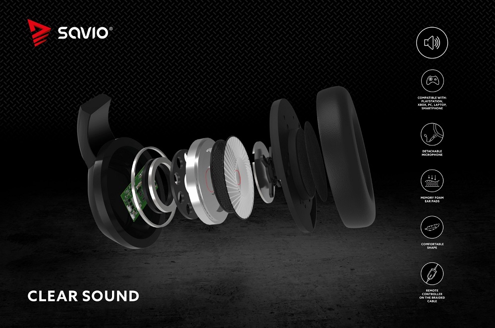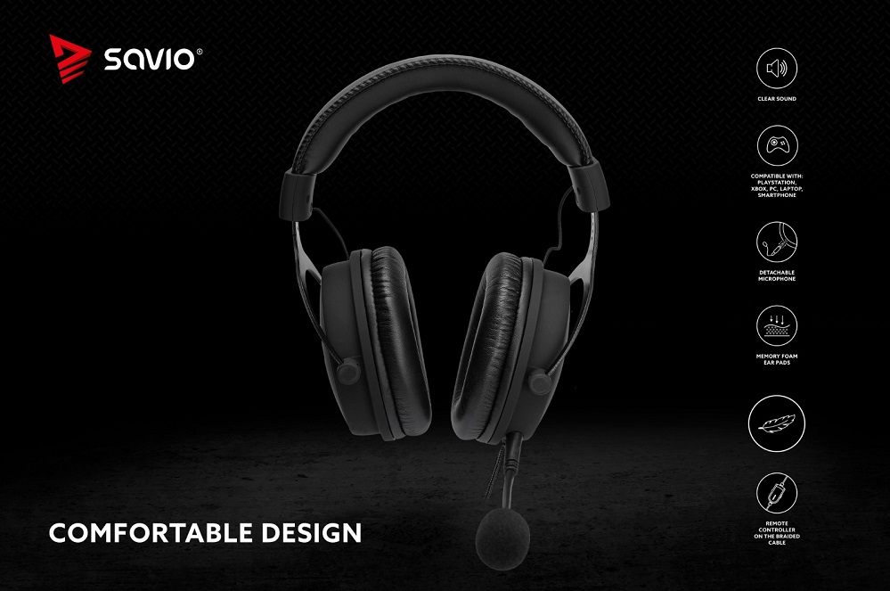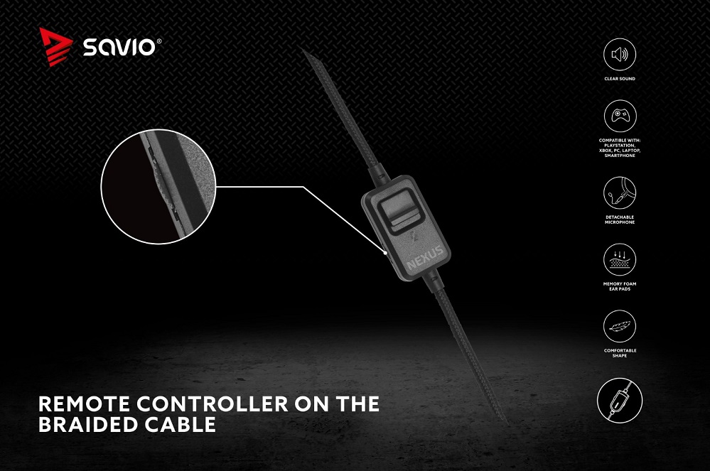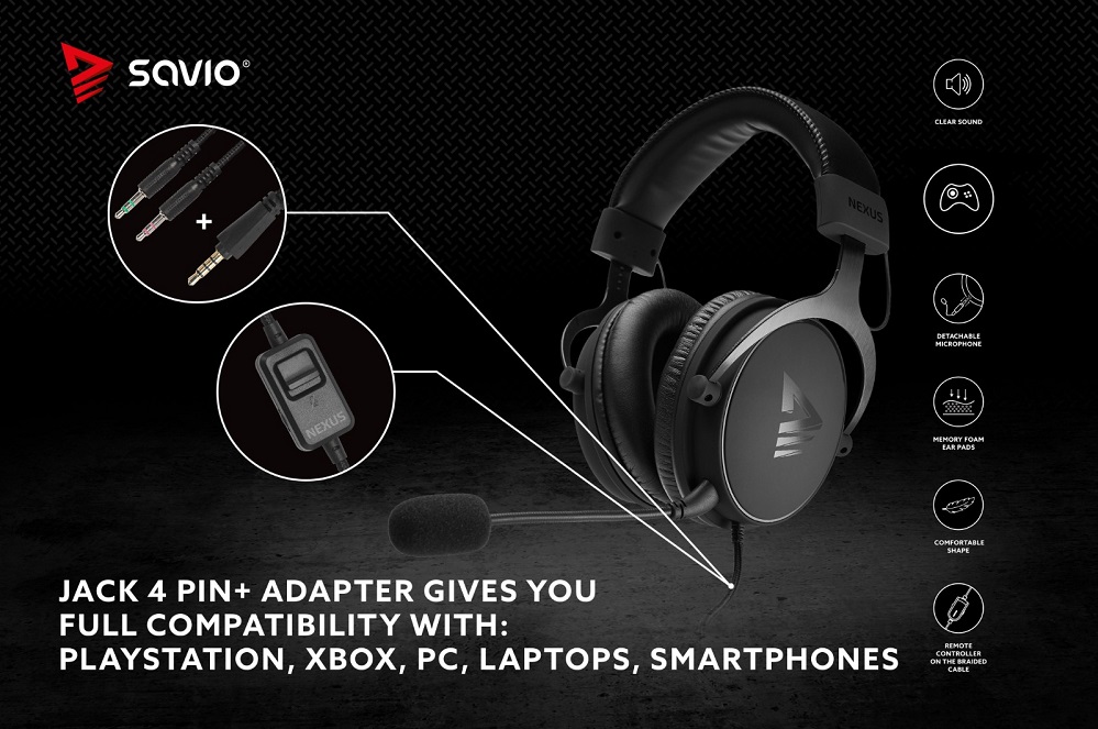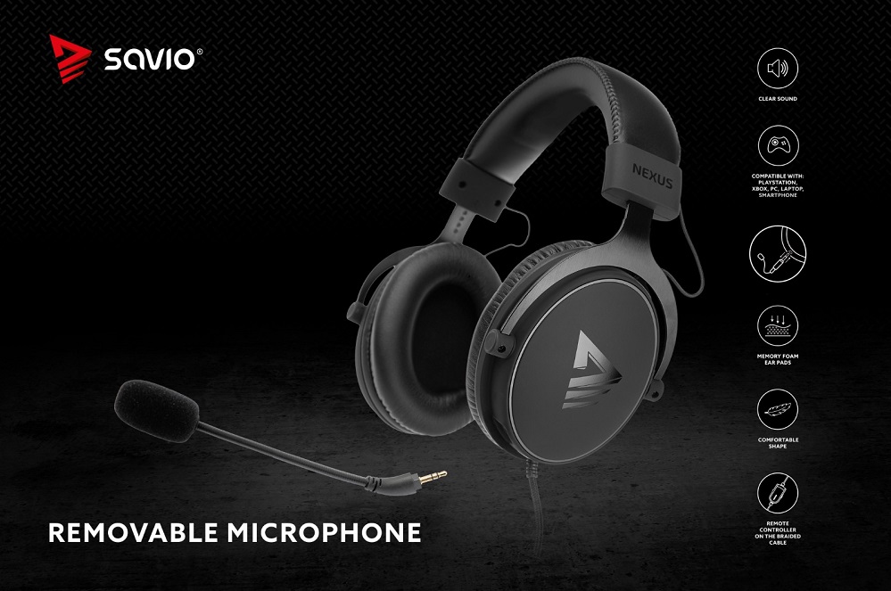 Casti Gaming Profesionale Savio NEXUS, compatibil cu XBOX, PlayStation, PC, Smartphone, Clear Sound, telecomanda pe fir, microfon detasabil, membrana din spuma cu memorie